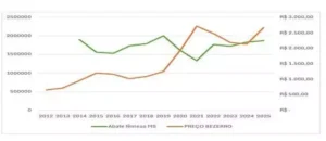 - Como a produção bovina depende de um intervalo biológico longo, a resposta do setor não é imediata, o que explica a alternância entre fases de alta e de baixa nos preços.