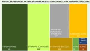 Os documentos de patente depositados no Brasil descrevem diferentes tecnologias relacionadas à melhoria do solo, defensivos ecológicos e biofertilizantes – como os bioinsumos e fertilizantes orgânicos, além de técnicas alternativas de irrigação, inovações digitais, maquinários e o desenvolvimento de novas variedades de plantas, incluindo as geneticamente modificadas.