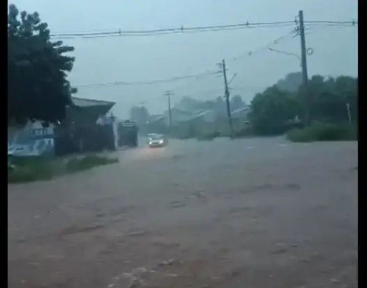 Forte chuva atingiu Maracaju, município distante 159 km da Capital, provocando enchente em diversos trechos da cidade nesta quarta-feira (18). Vídeos que circulam nos grupos