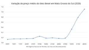 Pela primeira vez no ano, o preço médio do diesel passa a marca de R$ 7 e chega a R$ 7,11 em Mato Grosso do Sul.