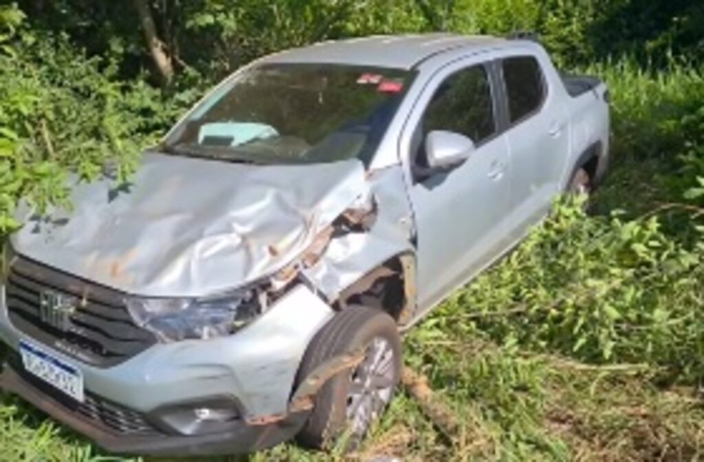 Os policiais afirmaram que a picape teria colidido contra a traseira do Kicks e saiu da pista.